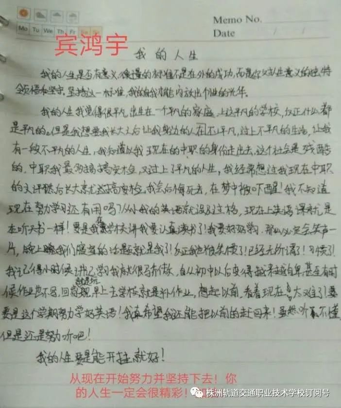 誰的青春不迷茫!度過了一段迷茫期,湖南中職株軌高二的學子們漸漸找到了目標和方向。同學們的作業也許還不是盡善盡美,但看得出都是用心之作,在對人生意義的思考中,在對疫情的感動體悟中,他們也在成長蛻變!通過這次線上學習,我們看到了她們積極向上的學習面貌、堅定前行的學習態度!同學們,加油吧!愿你們如這春日里的小樹,向著太陽,不負春光,努力生長!