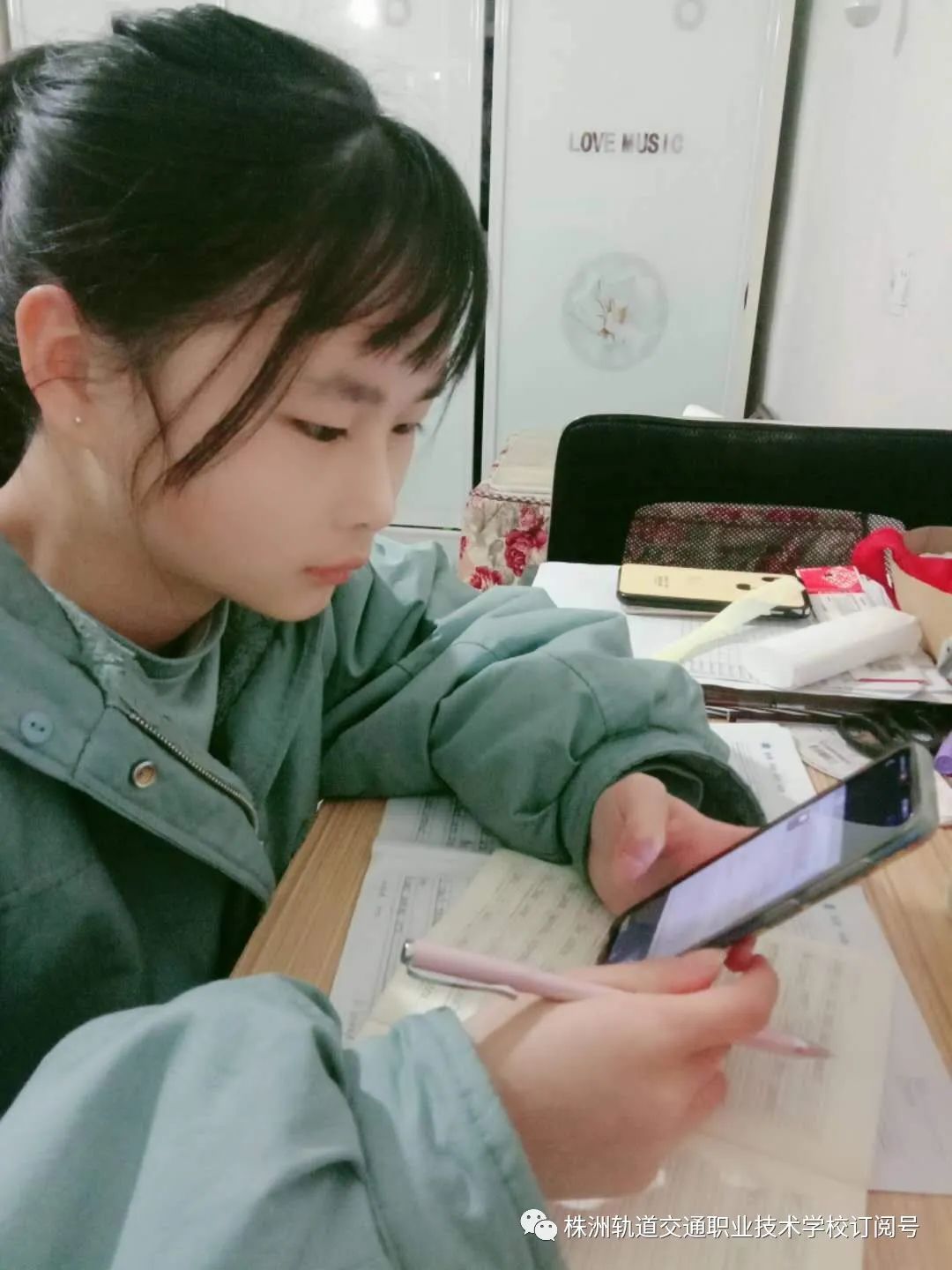 湖南中職1804班周镕知,一個非常沉穩自律的女孩,上課認真,積極思考,作業完成仔細。對于線上教學,周镕知有自己的看法,她說:我認為,線上教學的效果,主要還是取決于同學們的學習態度,在上課時是否會準備好書本、記號筆,是否認真聽課……你有多自律,就有多優秀。希望開學再見時,我們都是更好的自已。