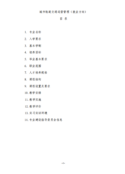 城市軌道交通運營管理專業 (就業方向)人才培養方案